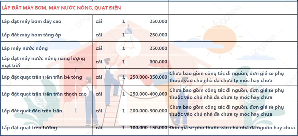 LẮP ĐẶT QUẠT ĐIỆN, MÁY BƠM, ...