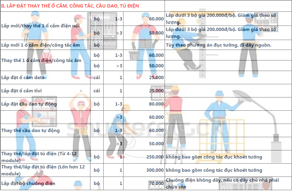 LẮP ĐẶT, THAY THẾ ĐÈN, THIẾT BỊ ĐIỆN CÁC LOẠI